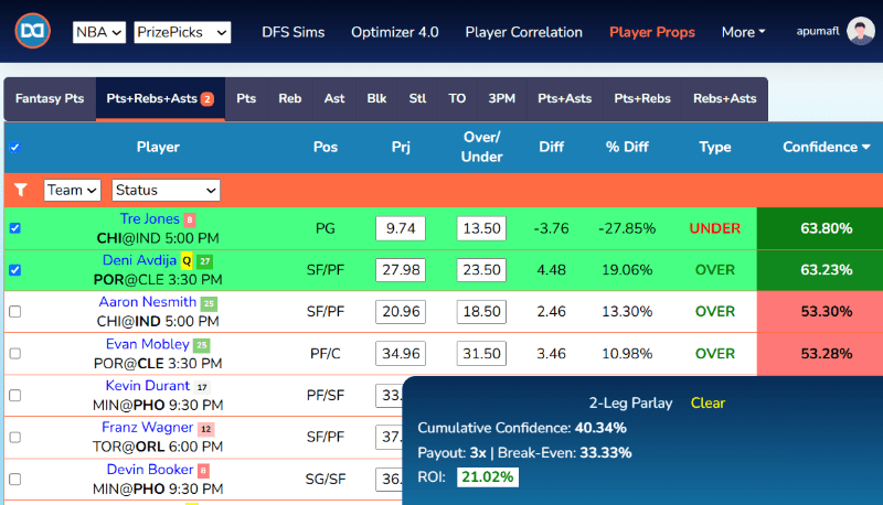 DraftDimeβ’ provides advanced analytical tools for Daily Fantasy Sports and Player Prop Bets, including our brand new Sims Tool as well as our Lineup Optimzers, Player Props Tool, and Player Correlation Reports